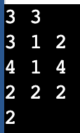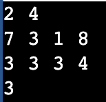 - 첫째 줄에 숫자 카드들이 놓인 행의 개수 N과 열의 개수 M이 공백을 기준으로 하여 각각 자연수로 주어진다. (1 ≤ N, M ≤ 100)