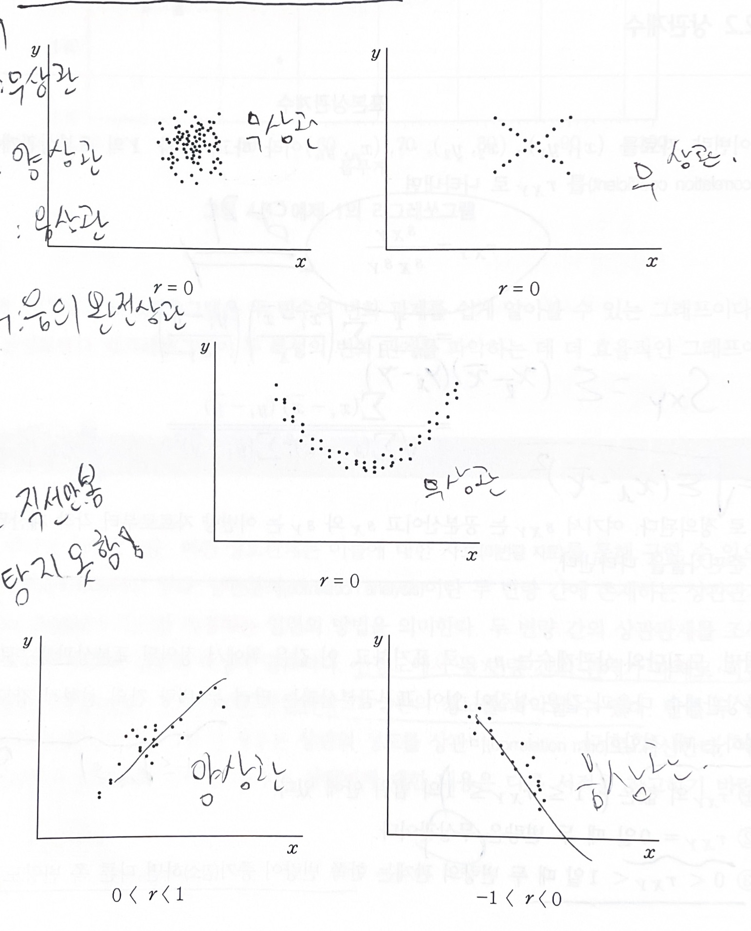 2) r=0일 때 두 변량은 무상관이다.