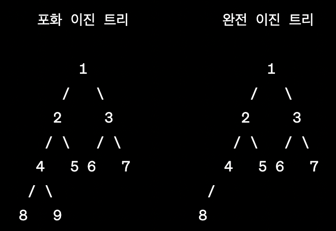 4. 포화 이진트리(Full Binary Tree) vs 완전 이진트리(Complete Binary Tree)