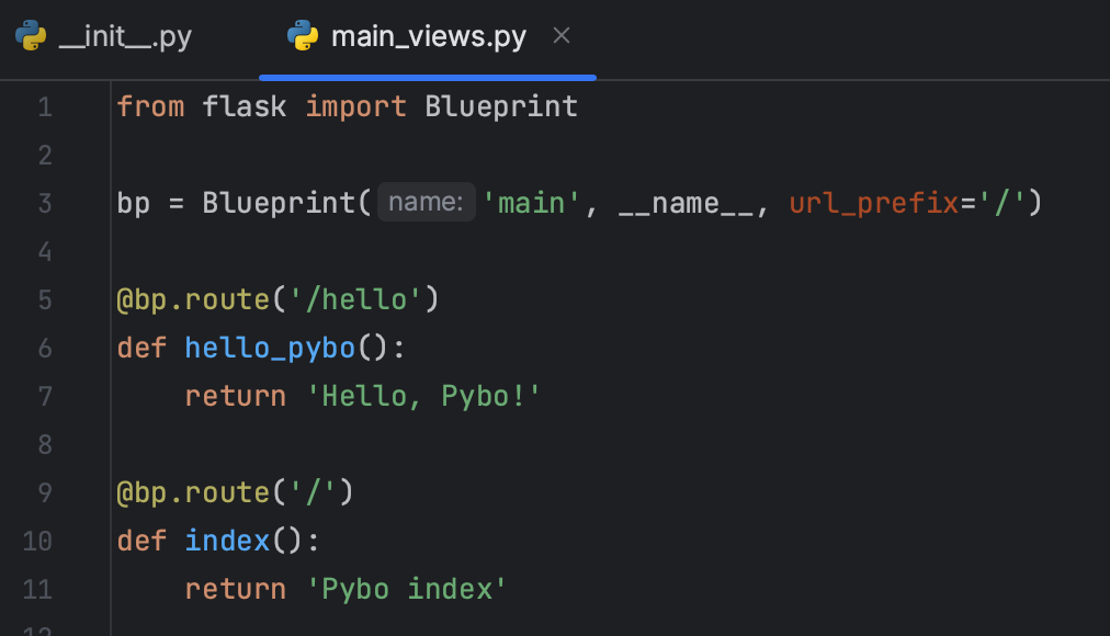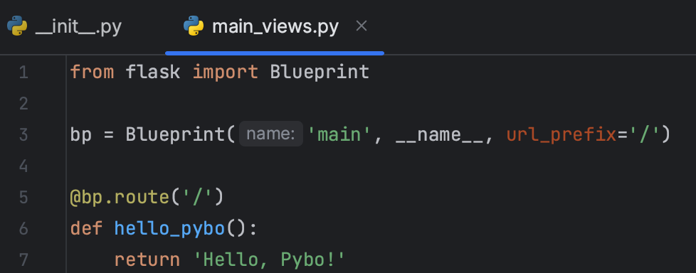 이제 1단계에서 생성한 bp 파일을 적용하기 위해 __init__.py 파일을 아래와 같이 수정하자.