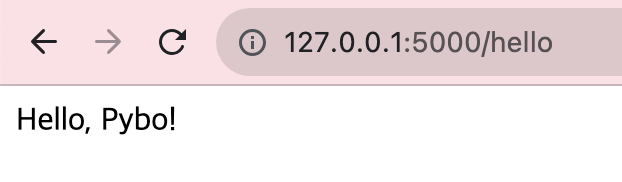 에 접속하면 라우터 /hello에 매핑된 hello_pybo() 함수가 호출되어 'Hello, Pybo!'가 출력된다.