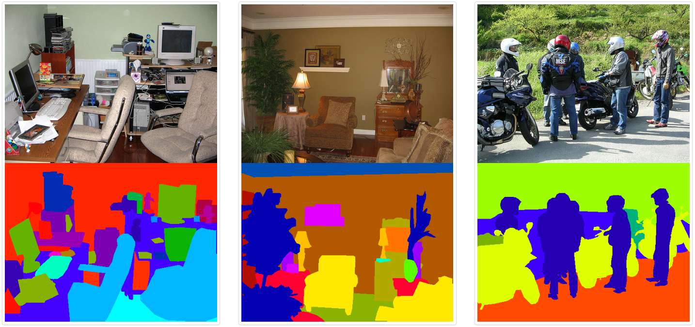 시맨틱 세그멘테이션은 한국말로 '의미론적 분할'이라고 하는데, 아래의 예시 이미지와 같이 이미지 내에서 픽셀 단위로 분류하여, 모든 픽셀이 어떤 카테고리에 속하는지 분류하는 것이다. 일반적으로 Computer Vision에서는 Object Detection, Image Classification 등 다양한 분야가 있지만 Semantic Segmentation은 비교적 이러한 문제들보다 난이도가 높은 문제에 속한다.