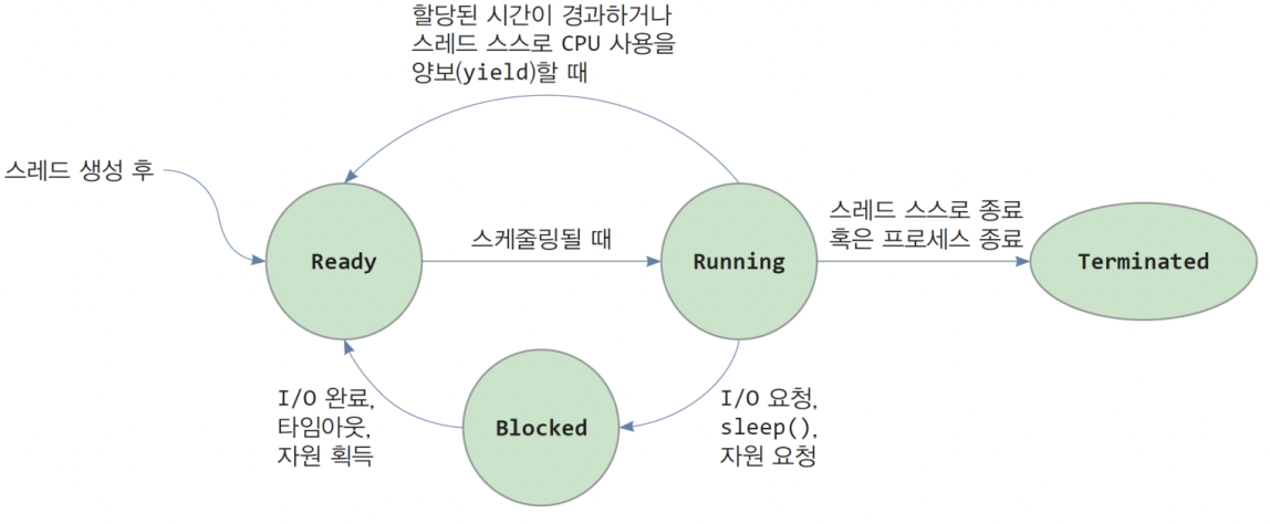 - Running > Terminated: 스레드 또는 프로세스 종료