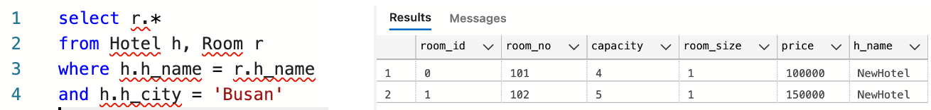 - Q3. 부산에 있는 호텔의 객실 정보를 모두 나타내자