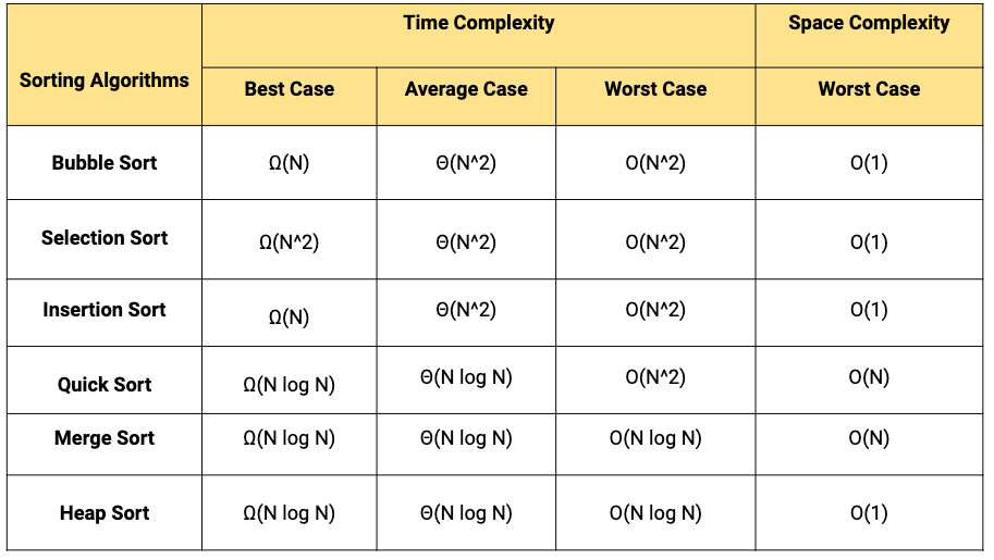 - 버블 정렬, 단순 선택 정렬, 단순 삽입 정렬, 셸 정렬, 퀵 정렬, 병합 정렬, 힙 정렬, 도수 정렬 등
