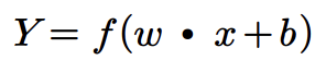 - 위 수식에서 f는 활성화 함수(예: 시그모이드 함수, ReLU 등), w는 가중치 벡터, 𝑥는 입력 벡터, 𝑏는 바이어스