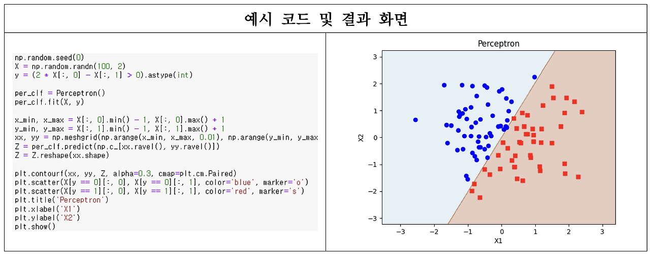 - 퍼셉트론(Perceptron): 퍼셉트론은 단층 신경망의 가장 기본적인 형태로, 선형 회귀와 유사한 구조를 가지며 이진 분류 문제를 해결하기 위해 사용