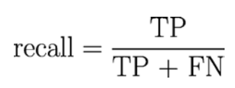 - 재현율(Recall): 재현율은 실제값이 긍정인 것들 중 예측값이 긍정인 비율을 나타냄