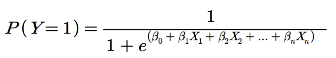 - 위 수식에서 𝑃(Y=1)은 양성 클래스에 속할 확률을 의미하며, X는 입력 변수, 𝛽는 회귀 계수를 나타냄. 모델은 주어진 데이터에서 확률을 최대화하는 회귀 계수를 찾기 위해 최대 우도 추정(MLE)법을 사용