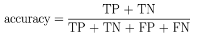 - 정확도(Accuracy): 2 x 2 혼동행렬에서, 아래와 같이 정확도를 수식화할 수 있음
