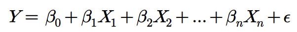 - 위 수식에서 𝛽는 회귀 계수, ϵ은 오차항이며, 회귀 계수를 찾기 위해 최소제곱법을 사용하여 오차 제곱합을 최소화