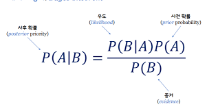 - 베이즈 정리(Bayes' theorem): 사전확률과 사후확률의 관계에 대해서 설명하는 정리
