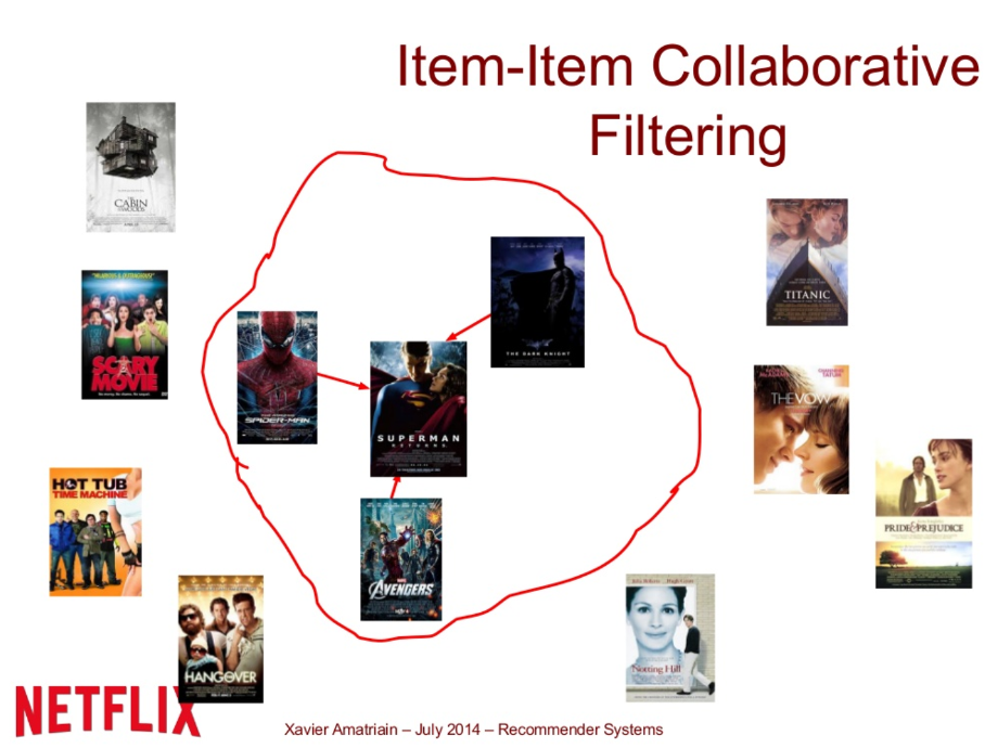- e.g., 대다수의 사용자가 A 영화에 이어 B 영화를 높게 평가했다면, A 영화를 선호하는 사용자에게 B 영화를 추천할 수 있음