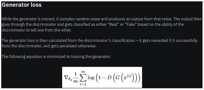 GAN의 전체적인 목적은 위와 같은 손실함수로 표현된다. 앞 부분의 E[log(D(x))]는 진짜 데이터 x에 대해 판별자 D가 진짜로 판별하도록 학습하는 부분이고 뒷 부분의 E[log(1 - D(G(z)))]는 가짜 데이터 G(z)에 대해 판별자 D가 가짜로 판별하도록 학습하는 항목이다. 이 과정에서 판별자 D는 진짜 이미지를 진짜로, 가짜 이미지를 가짜로 정확하게 구분할 수 있도록 최적화 되고, 동시에 생성자 G는 판별자가 가짜 이미지를 진짜라고 오분류하도록 최적화된다.