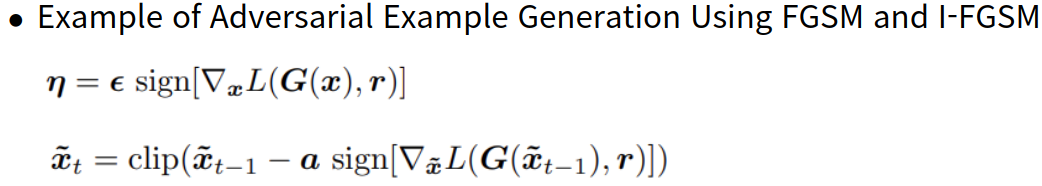 이때, 노이즈 η를 만들기 위해 본 논문에서는 이전의 연구들 중 FGSM과 I-FGSM을 사용했다.