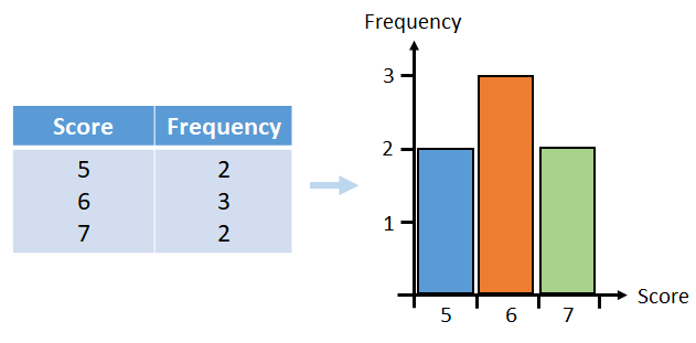 하지만, 자료의 개수가 방대하면 크기순으로 배열하는 것은 다루기 어렵기 때문에 표를 이용해 원자료를 정리하는데 이 표를 '도수분포표(frequency table)'라 하며 도수는 동일한 측정값의 개수로서 질적 자료나 이산자료 정리에 이용되며 f로 표시함