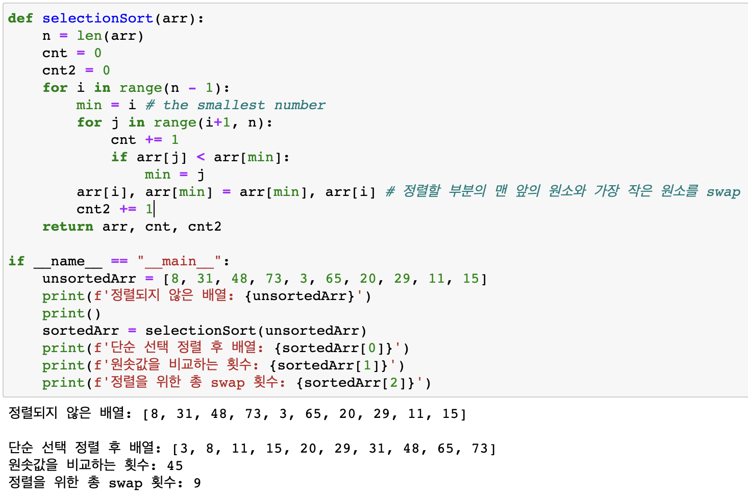 ex) 위 예제에서 배열의 크기 len(arr) = 10 → (100 - 10)/2 = 45