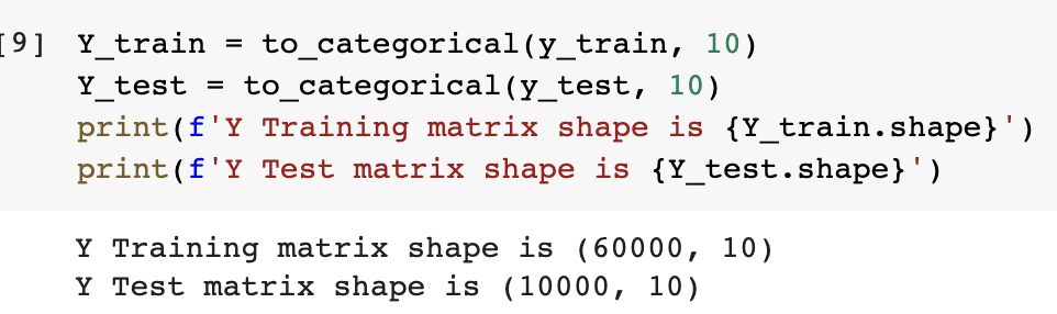 · Y_train = to_categorical(y_train, 10) &Y_test = to_categorical(y_test, 10)