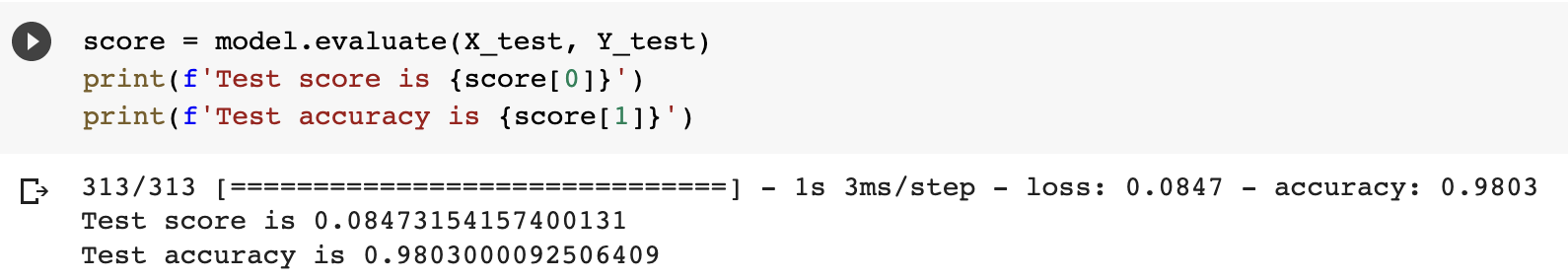 · score = model.evaluate(X_test, Y_test)