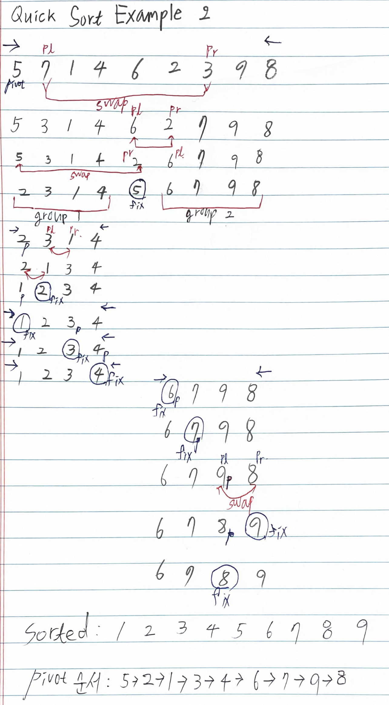 이 과정이 끝나면 이제 피벗을 기준으로 오른쪽 값을 정렬해주면 된다.
