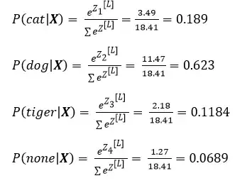 계산으로 구해진 확률 분포를 기반으로 신경망은 주어진 이미지가 고양이인지, 개인지, 호랑이인지, 아무것도 아닌지를 분류한다.