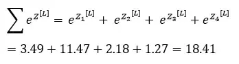 먼저, 행렬 Z[L] 요소들 각각에 자연 상수(e)를 제곱해줘서 계산한다.