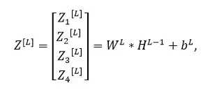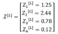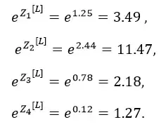 위와 같이 행렬 Z[L] 요소들 각각에 자연 상수(e)를 제곱해줘서 계산한다.