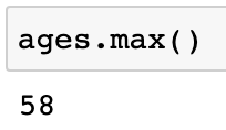 만약 승객의 나이 시리즈 중 최댓값이 궁금하면 아래와 같이 작업을 수행할 수 있다.