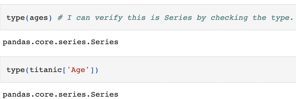 type() 함수로 확인한 결과, DataType이 Series임을 확인할 수 있다. 또한,