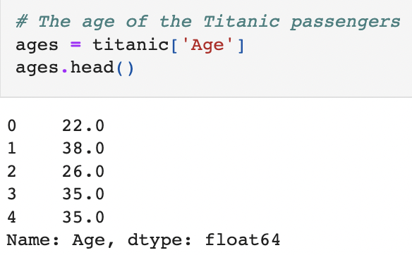 - 나이만 추출: ages = titanic['Age']