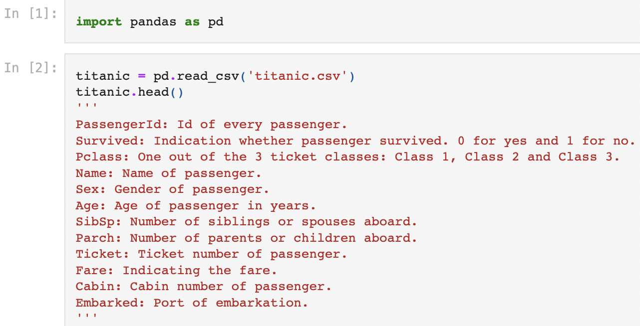 먼저, 판다스를 임포트해주고, 판다스의 read_csv() 함수로 titanic.csv 파일을 불러와준다.