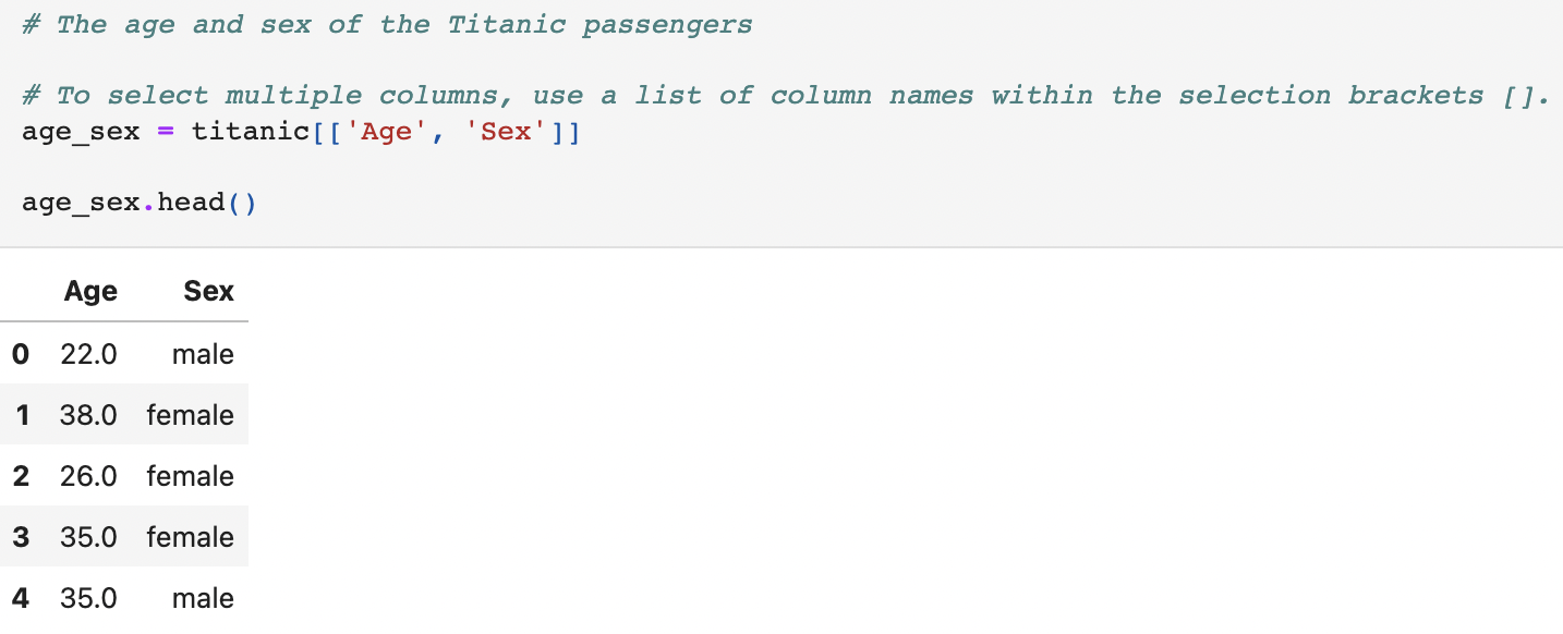 - 나이와 성별 추출: age_sex = titanic[['Age', 'Sex']]