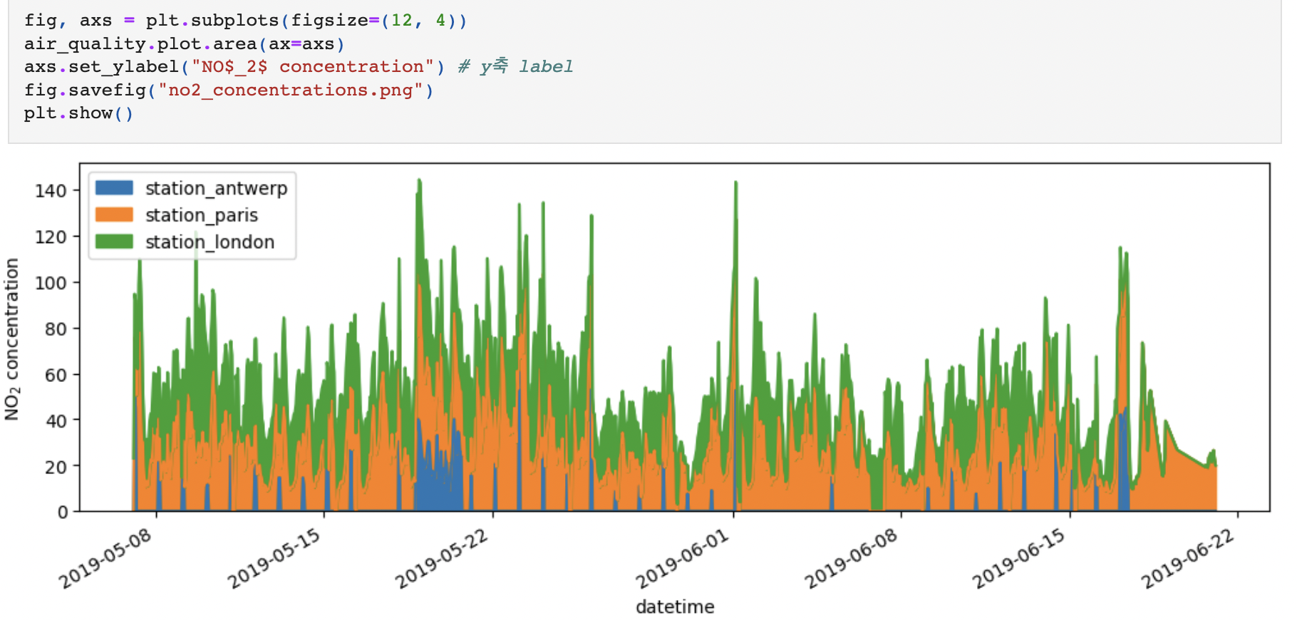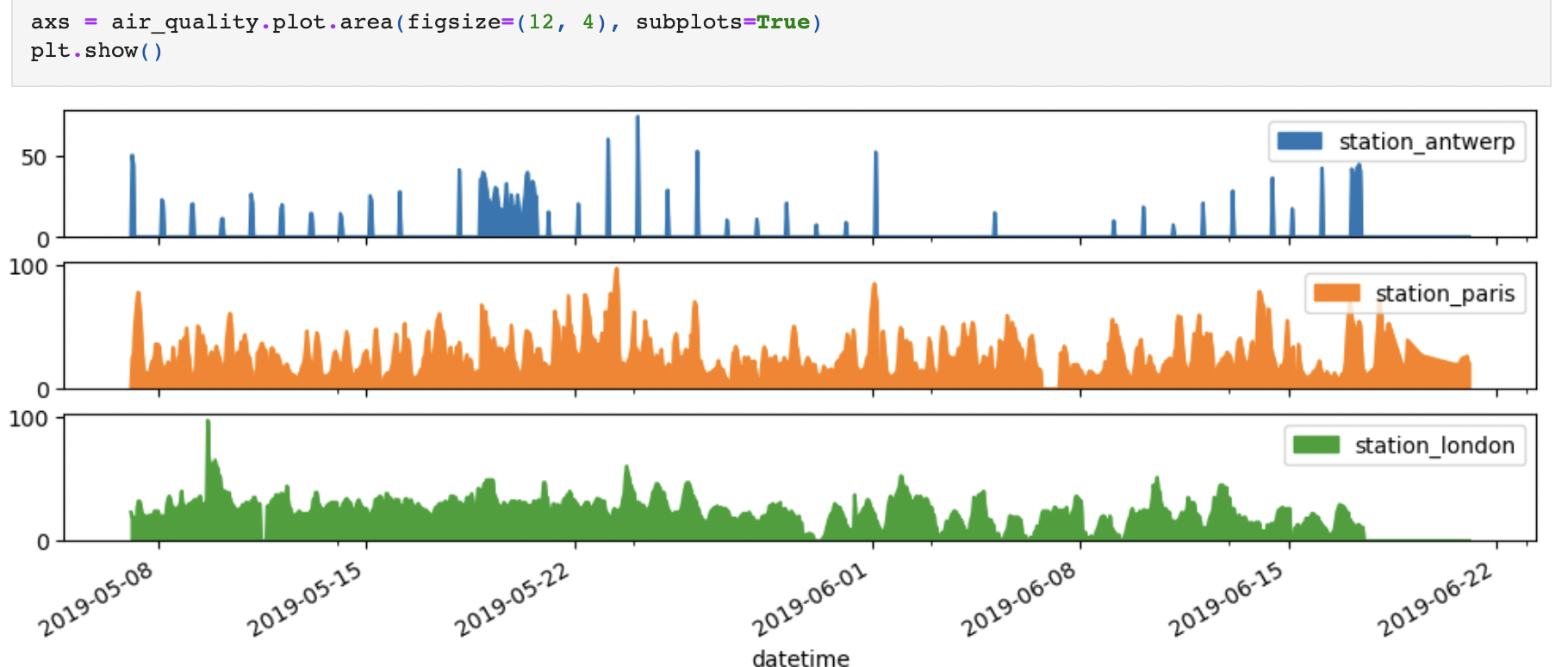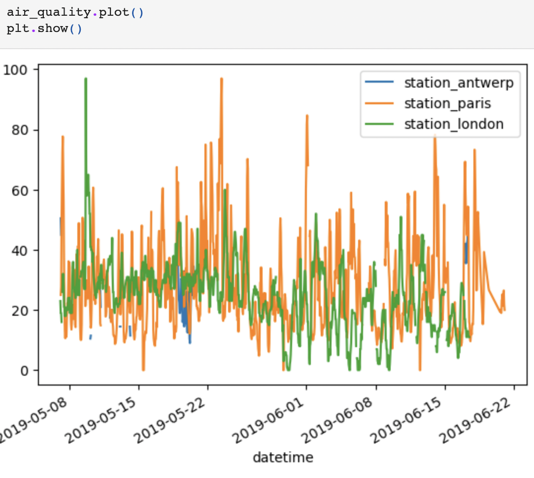 위 그래프를 보면 station_antwerp, station_paris, station_london 3개의 열에 대해 모두 선 플롯이 그려졌음을 확인할 수 있다.