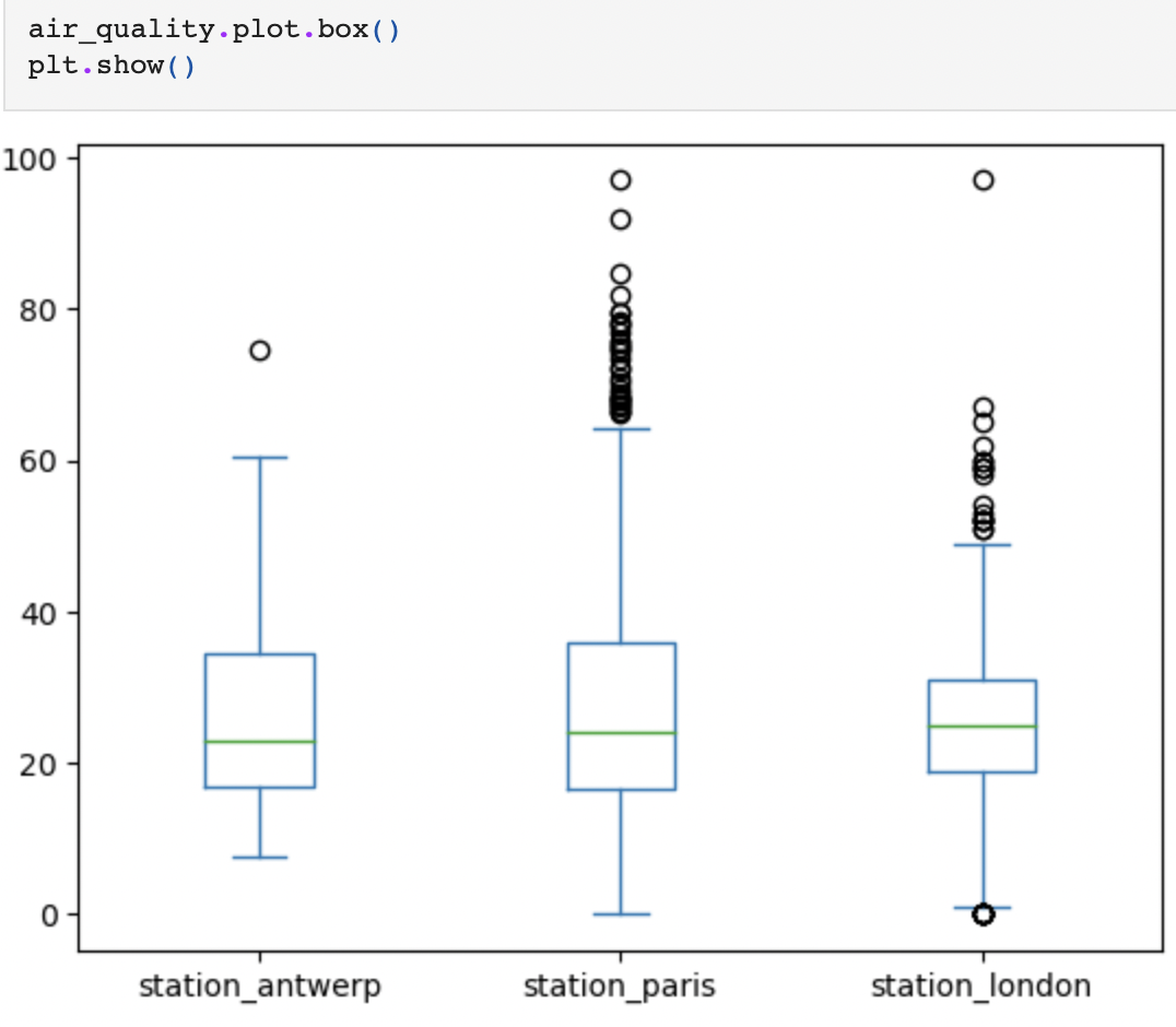 그 중에서도 box는 상자그림과 이상값 포스팅(https://psleon.tistory.com/77)에서 다룬 상자그림을 나타내는 메서드로 실습해보면 아래와 같다.