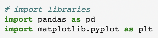 이를 위해 matplotlib에서 pyplot을 사용할 것인데, 아래와 같이 import 해주고 alias로 plt를 지정해준다.