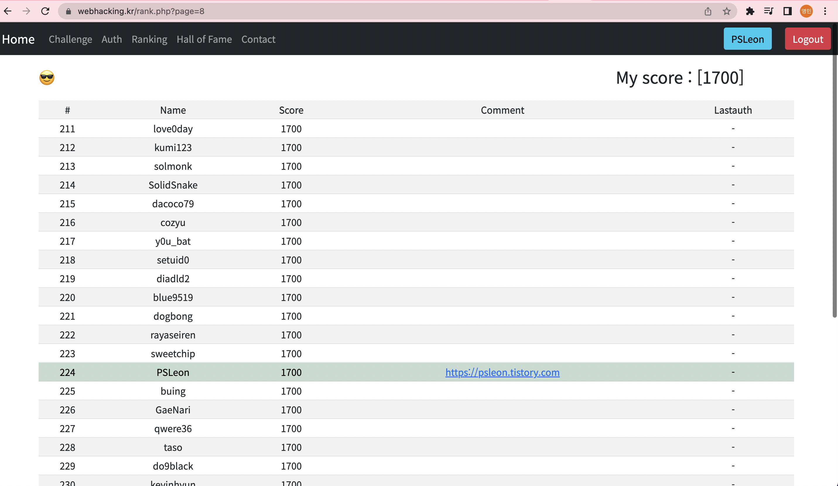 약 8년~9년전쯤 새벽 3~4시까지 잠 안자며 webhacking.kr 의 모든 문제를 해결했던 기억이 있다.
