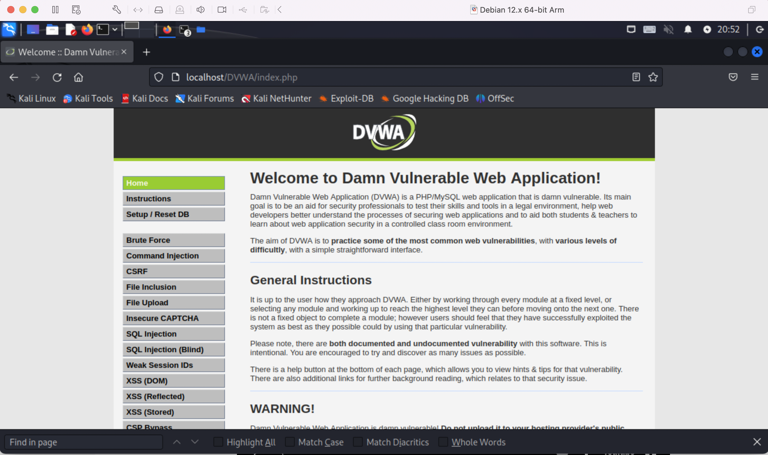 오늘부터 모레(5/31)에 진행해야 하는 교내 웹 해킹방어대회를 준비하기 위해 오래 전에 공부해서 잊어버린 SQL injection이나 XSS 등 다양한 웹 해킹 기법을 복습도 할겸 DVWA 환경을 구축해 실습해보았다.
