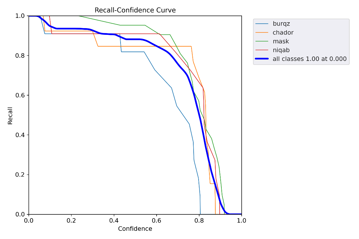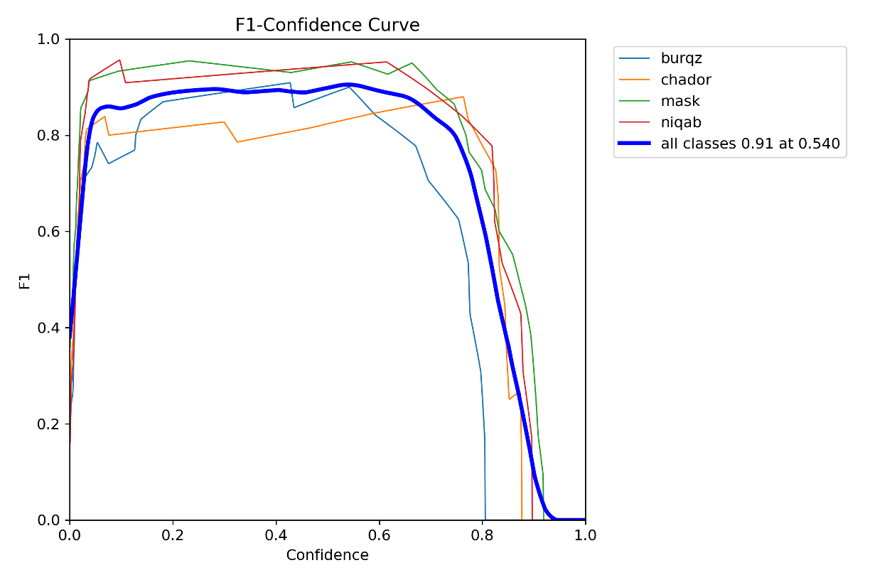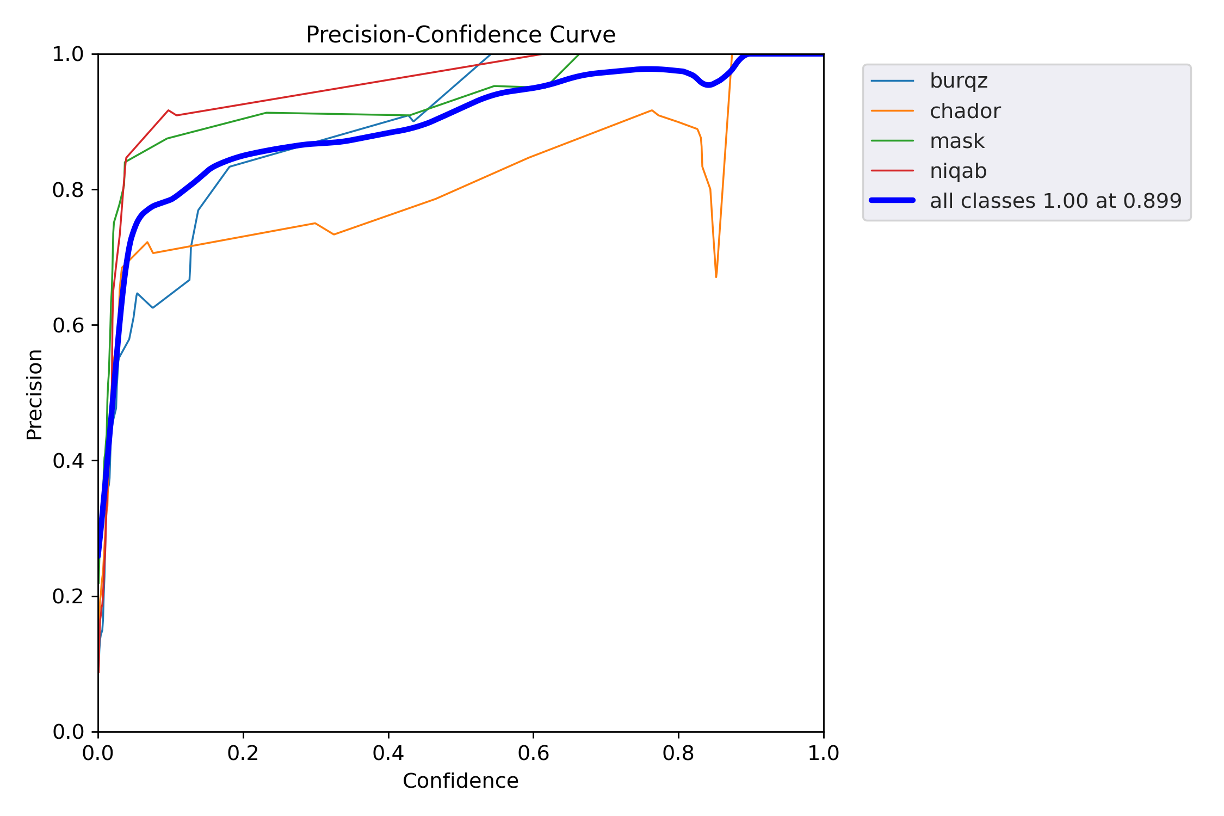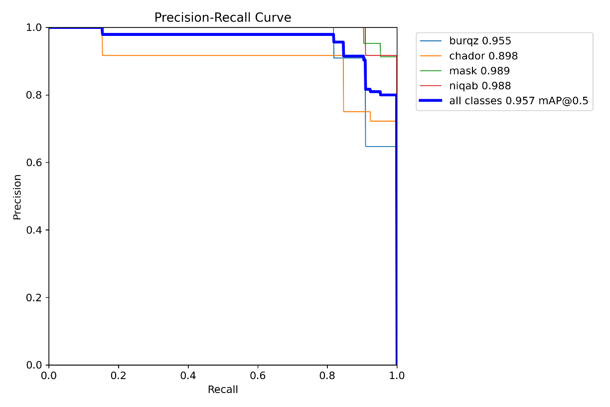 The model was trained on dataset which contains 377 hijab or mask images belonging to 4 classes. The classes are defined as follows: