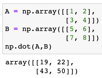 np.dot()은 넘파이 배열 2개를 인수로 받아 그 내적(곱)을 반환한다.