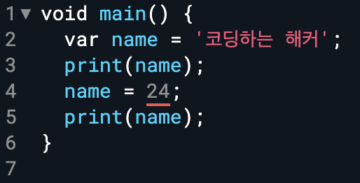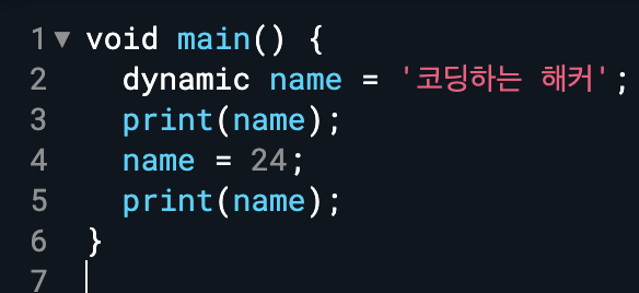하지만 dynamic 키워드를 사용하면 변수의 타입이 고정되지 않아서 다른 타입의 값을 저장할 수 있다. 아래의 예를 통해 확인해보자.