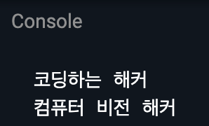 print() 함수는 문자열을 콘솔에 출력하는 함수로 python의 print와 동일하다.