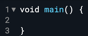 다트는 프로그램 시작점인 엔트리 함수 기호로 main()을 사용한다. 이때 void는 아무값도 반환하지 않는다는 뜻이다.