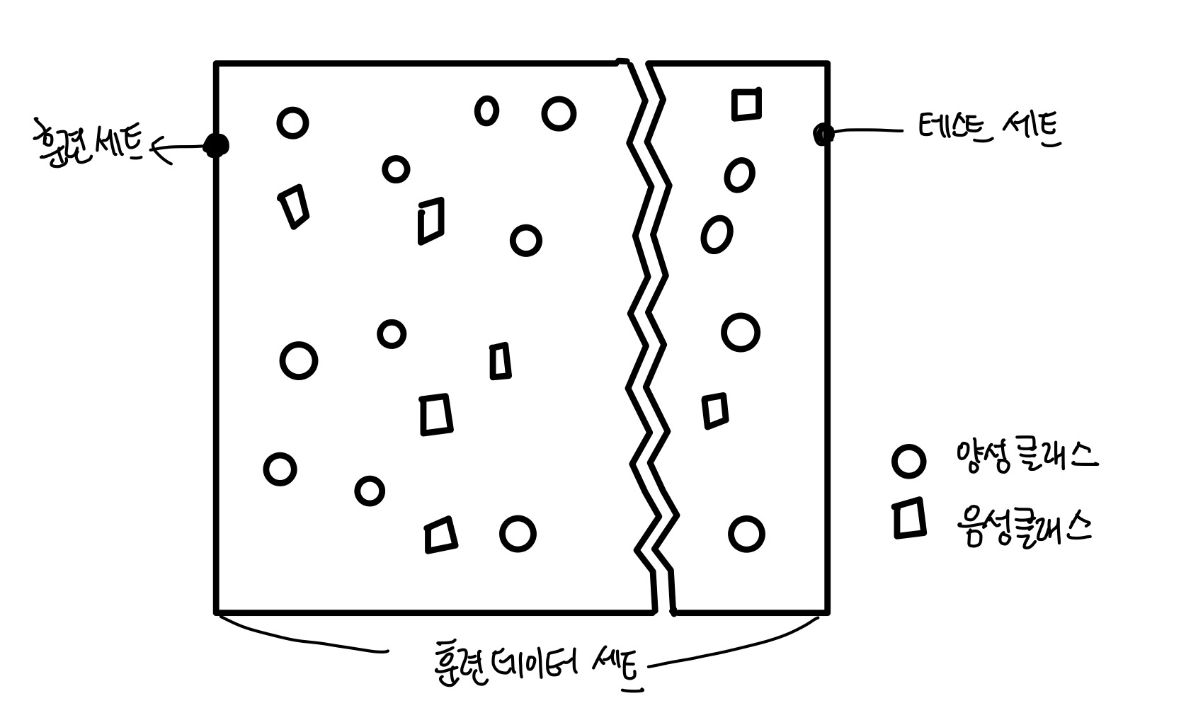 - 훈련 데이터셋을 나눌 때는 테스트 세트보다 훈련 세트가 더 많아야 한다.