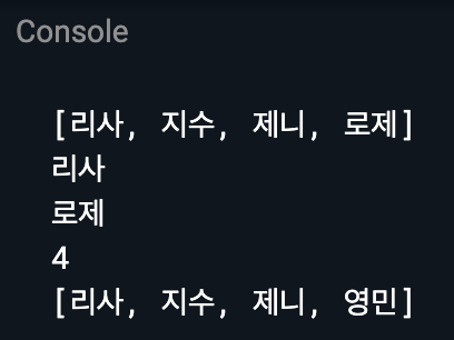 기본적인 리스트 선언과 출력, 길이 반환은 위 코드를 통해 충분히 살펴볼 수 있다. 덧붙여 설명하자면 리스트의 길이는 파이썬의 경우 len() 함수를 사용하지만, 다트에서는 length를 가져와 확인할 수 있다.