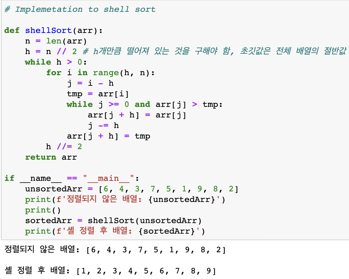 추가로, h값을 어떠한 수열을 사용하면 간단하고 효율적인 정렬을 할 수 있음
